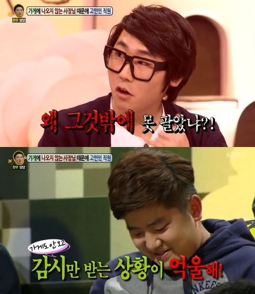 지난 9일 방송된 KBS 2TV '대국민 토크쇼-안녕하세요'에서는 가게에 나오지 않는 사장님 때문에 고민이라는 직원이 사연을 털어놨다.