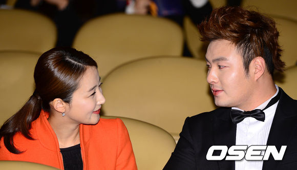 시상식에 앞서 넥센 박병호가 배우자 이지윤씨와 이야기를 나누고 있다.