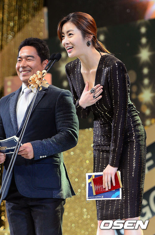 10일 오후 서울 삼성동 코엑스 오디토리움에서 열린 '2013 한국야쿠르트 세븐 프로야구' 골든글러브 시상식에서 배우 강소라가 투수 부문 시상식에 앞서 인사말을 하고 있다.