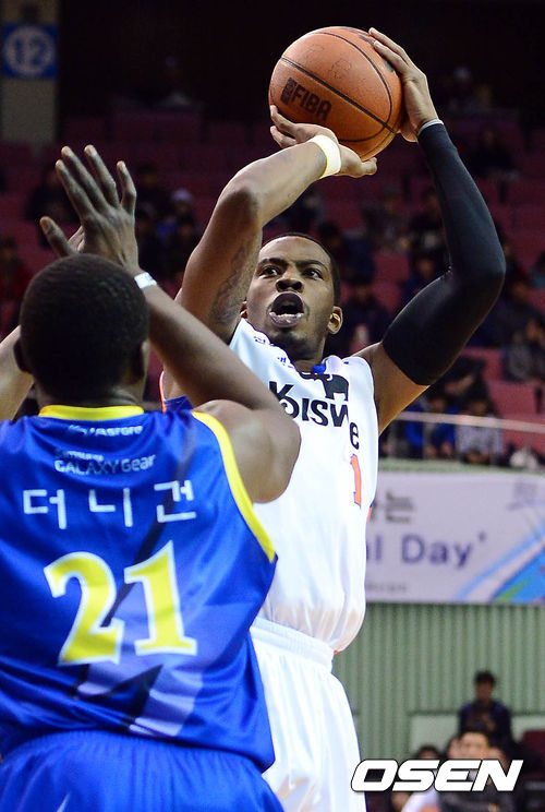10일 오후 서울 잠실실내체육관에서 열린 '2013-2014 KB국민카드 프로농구' 서울 삼성과 인천 전자랜드의 경기 1쿼터 로드가 더니건을 앞에두고 슛을 시도하고 있다.