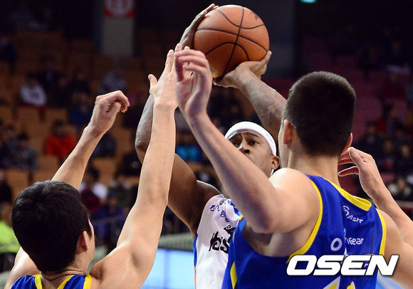 10일 오후 서울 잠실실내체육관에서 열린 '2013-2014 KB국민카드 프로농구' 서울 삼성과 인천 전자랜드의 경기 2쿼터 포웰이 미들슛을 시도하고 있다.