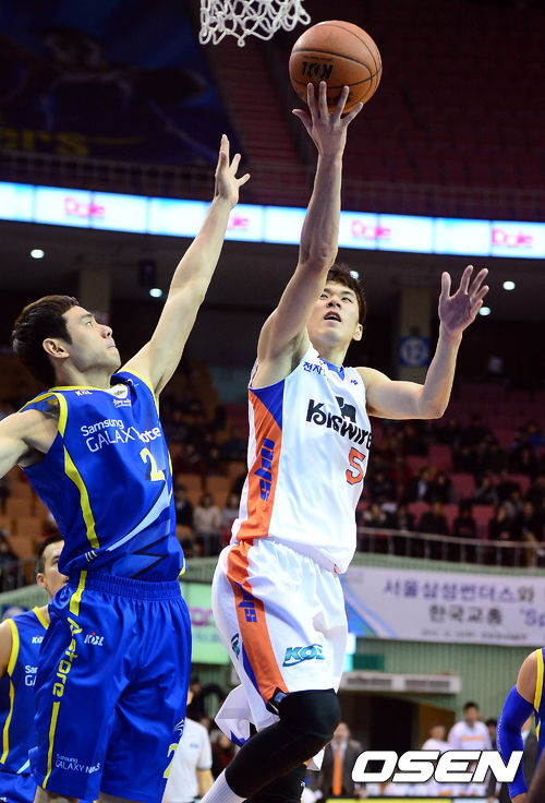10일 오후 서울 잠실실내체육관에서 열린 '2013-2014 KB국민카드 프로농구' 서울 삼성과 인천 전자랜드의 경기 2쿼터 김상규가 이관희를 피해 슛을 시도하고 있다.