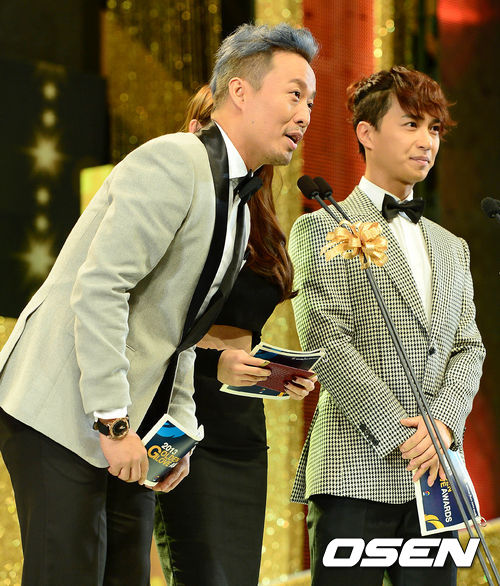 개그맨 정준하와 가수 김원준이 수상자를 발표하고 있다.