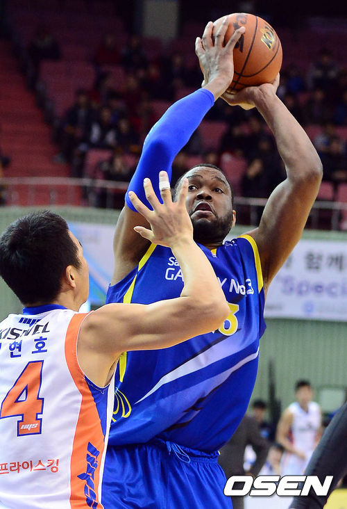 10일 오후 서울 잠실실내체육관에서 열린 '2013-2014 KB국민카드 프로농구' 서울 삼성과 인천 전자랜드의 경기 3쿼터 존슨이 이현호를 앞에두고 슛을 시도하고 있다.