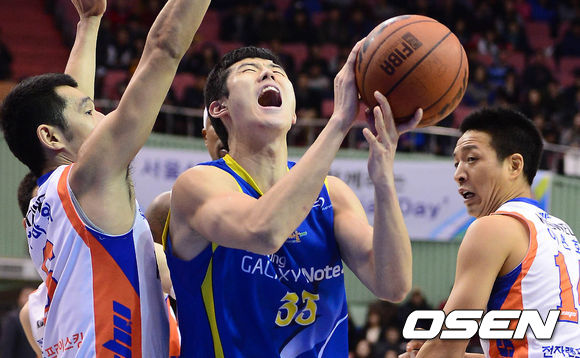 10일 오후 서울 잠실실내체육관에서 열린 '2013-2014 KB국민카드 프로농구' 서울 삼성과 인천 전자랜드의 경기 3쿼터 임동섭이 골밑에서 슛을 시도하고 있다.