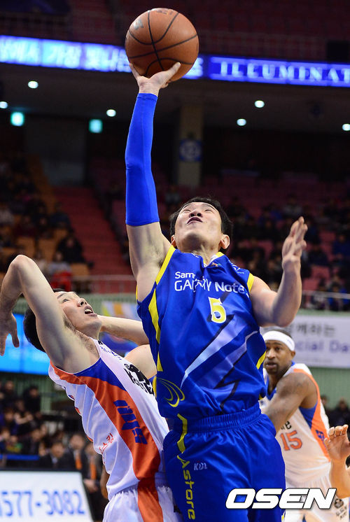 10일 오후 서울 잠실실내체육관에서 열린 '2013-2014 KB국민카드 프로농구' 서울 삼성과 인천 전자랜드의 경기 3쿼터 이정석이 골밑슛을 시도하고 있다.