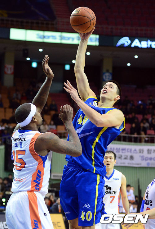 10일 오후 서울 잠실실내체육관에서 열린 '2013-2014 KB국민카드 프로농구' 서울 삼성과 인천 전자랜드의 경기 4쿼터 이동준이 포웰을 앞에두고 슛을 시도하고 있다.