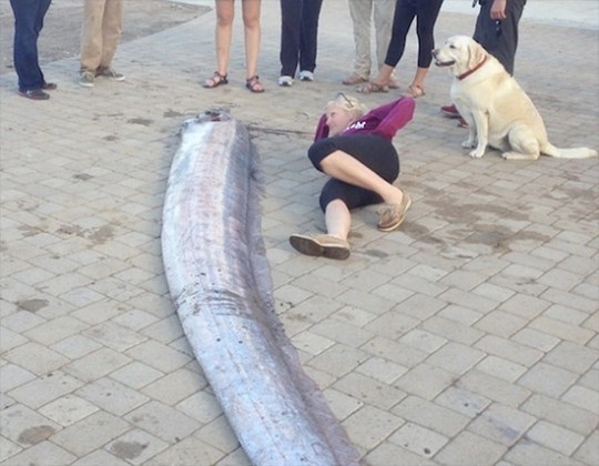 [OSEN=이슈팀] 2.34m 초대형 갈치가 엄청난 위용을 드러냈다. 일반 사람 키의 2배가 넘고 폭의 길이만 20cm에 달할 정도다.