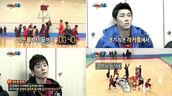 이날 방송에서 경기를 시작하는 점프볼에서 공을 먼저 쳐낸 김혁은 공을 길게 쳐 뒤에 있던 서지석에게 패스했다. 이를 받은 서지석은 곧장 골대로 달려가 득점에 성공하는 플레이를 보여줬다.