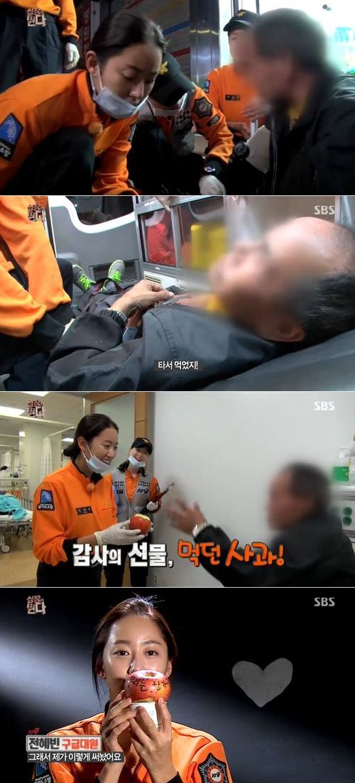 구급차를 타고 출동한 전혜빈과 최우식은 만취자를 병원으로 이송했다. 이 과정에서 전혜빈은 만취자의 연락처를 알아내려 애쓰고, 시종 말을 걸며 분위기를 주도했다.