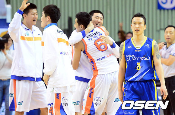 그런데 문제가 발생했다. 종료 4.3초를 남기고 김승현이 건넨 패스를 포웰이 읽고 가로챈 것. 코트를 질주한 포웰은 김상규에게 패스했다. 마무리가 되지 않았지만 번개처럼 달려든 차바위가 종료부저와 동시에 공을 골대 안으로 밀어 넣었다. 올 시즌 최고의 위닝 버저비터가 터졌다. 4연승을 바라봤던 삼성은 망연자실했다.
