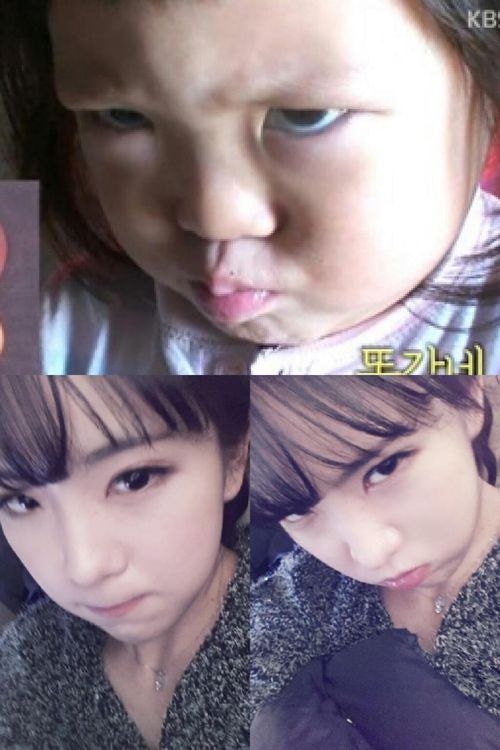 공개된 사진 속에서 조현영은 KBS 2TV '해피선데이-슈퍼맨이 돌아왔다'에 출연해 인기를 끌고 있는 이종격투기 선수 추성훈의 딸 추사랑의 귀여운 표정을 따라하고 있다.