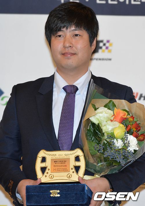 올해의 드라이버 대상으로 선정된 황진우(CJ레이싱)가 기념촬영을 하고 있다.