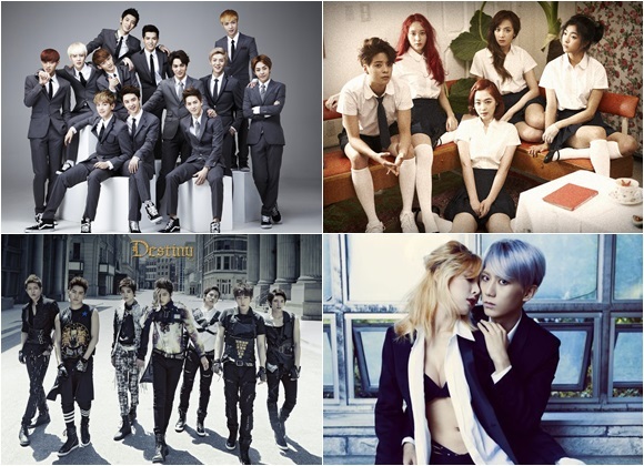 YG의 뒤를 이어 SM엔터테인먼트(이하 SM) 소속 가수인 그룹 엑소가 '으르렁', 에프엑스 '첫 사랑니'가 각각 2위와 6위, SM레이블에 속한 인피니트가 '데스티니'로 4위에 올랐다.