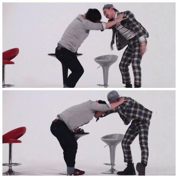 공개된 사진 속에는 지드래곤과 정형돈이 함께 춤을 추고 있는 모습이 담겨있다. 두 사람은 서로의 목을 부여잡고 '저질댄스'를 추고 있어 웃음을 자아낸다.
