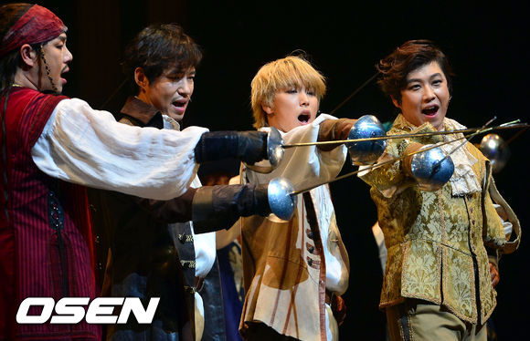 11일 오후 경기도 야탑동 성남아트센터 오페라하우스에서 진행된 뮤지컬 '삼총사' 프레스콜에서 유준상과 성민이 열연을 펼치고 있다.
