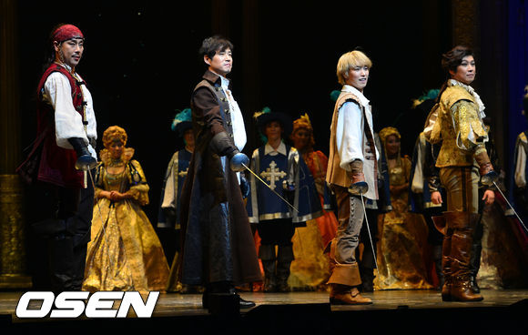 11일 오후 경기도 야탑동 성남아트센터 오페라하우스에서 진행된 뮤지컬 '삼총사' 프레스콜에서 성민과 유준상, 민영기, 김법래가 열연을 펼치고 있다.