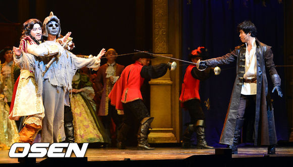 11일 오후 경기도 야탑동 성남아트센터 오페라하우스에서 진행된 뮤지컬 '삼총사' 프레스콜에서 박성환과 유준상이 열연을 펼치고 있다.