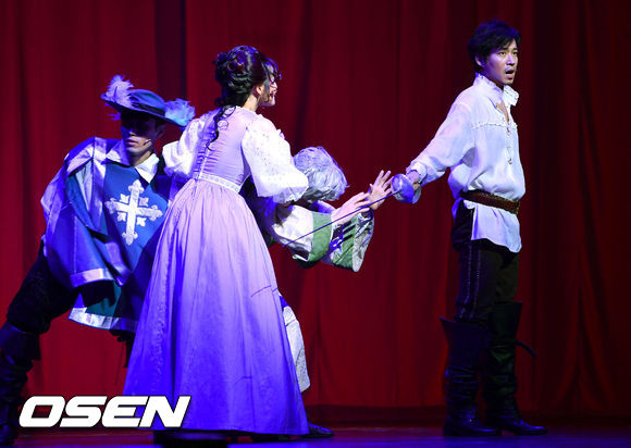 11일 오후 경기도 야탑동 성남아트센터 오페라하우스에서 진행된 뮤지컬 '삼총사' 프레스콜에서 유준상이 열연을 펼치고 있다.