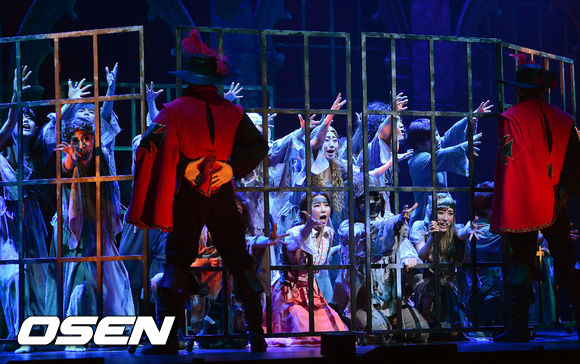 11일 오후 경기도 야탑동 성남아트센터 오페라하우스에서 진행된 뮤지컬 '삼총사' 프레스콜에서 출연배우들이 열연을 펼치고 있다.