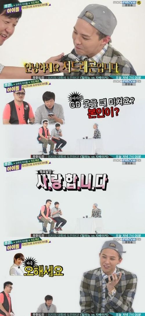 이준은 11일 오후 방송된 MBC에브리원 '주간 아이돌'에서 정형돈, 데프콘의 주도로 갑작스런 지드래곤과의 전화 연결에 임해야 했다.