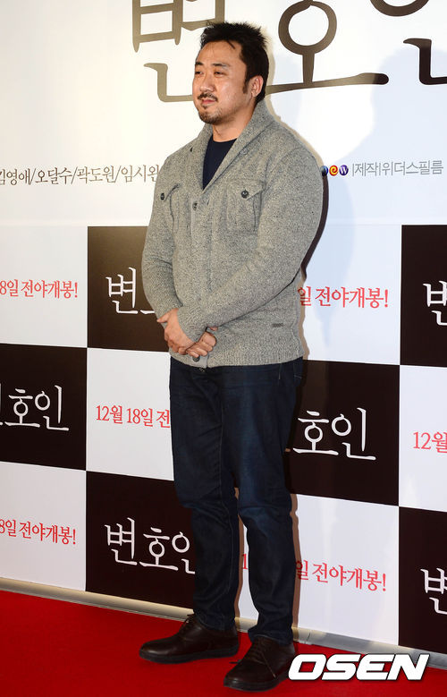 11일 오후 서울시 삼성동 메가박스 코엑스에서 열린 영화 '변호인' VIP 시사회에서 마동석이 포토타임을 갖고 있다.