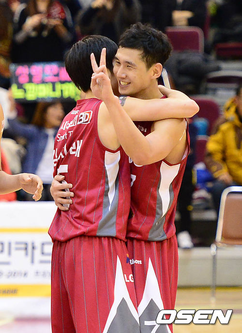 경기 종료 후 LG 김시래와 양우섭이 승리의 기쁨을 나누고 있다./sunday@osen.co.kr