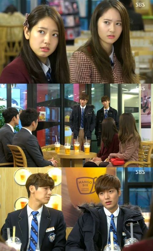 11일 오후 방송된 '상속자들'에서는 은상(박신헤 분), 보나(크리스탈 분)가 옆학교 방송부 남학생들과 만나는 장면을 목격하는 탄(이민호 분), 찬영(강민혁 분)의 모습이 그려졌다.