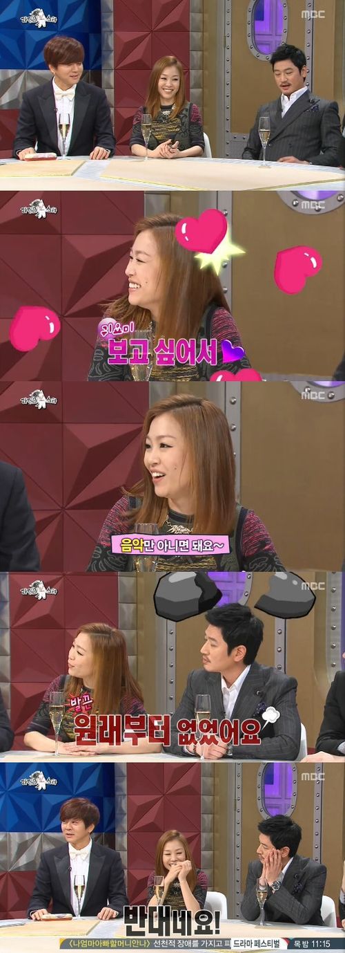 과거 ‘라디오스타’ 출연을 통해서도 핑크빛 로맨스를 자아냈던 박정현과 바비 킴. 바비킴은 “나 음악은 잘 해”라고 매력을 어필했지만, 박정현은 단칼에 “음악 하는 남자는 안 만나고 싶다. 음악만 아니면 된다”라고 단호하게 말했다. 특히 원래부터 바비킴에게는 관심이 없었다고 덧붙여 웃음을 자아냈다.