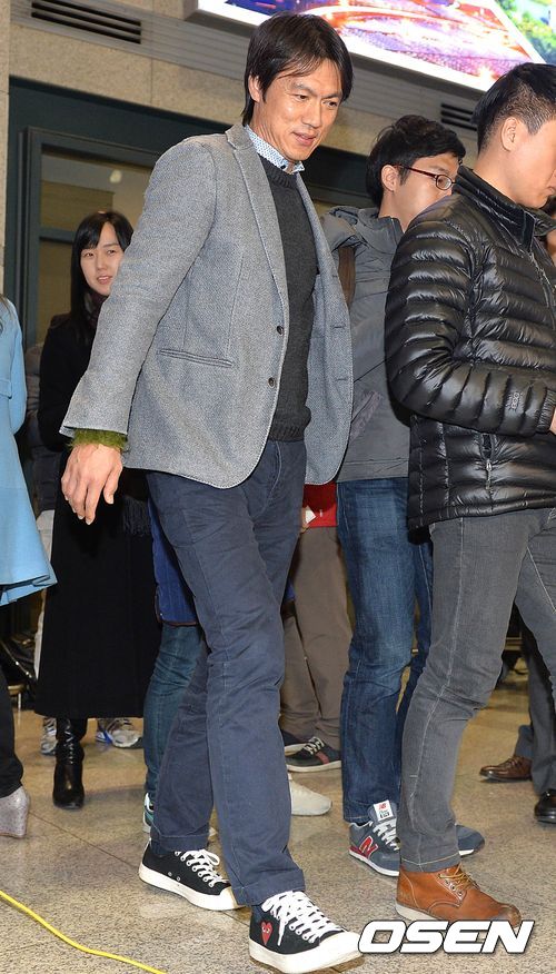홍명보 축구대표팀 감독이 12일 오전 2014년 브라질 월드컵 조추첨식과 현지 경기장 및 베이스캠프 답사를 마치고 인천공항을 통해 귀국해 취재진과의 질의응답 시간을 마친 뒤 발걸음을 옮기고 있다.