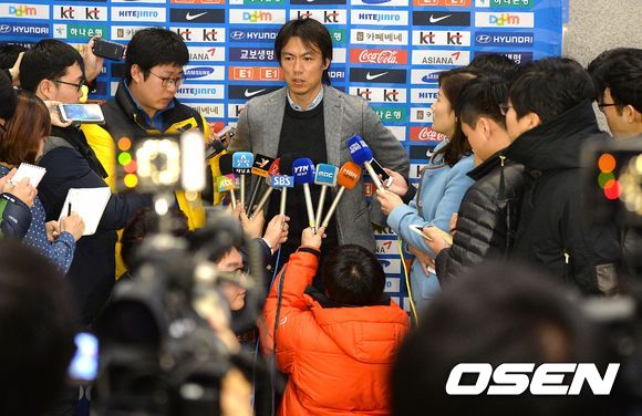 홍명보 축구대표팀 감독이 12일 오전 2014년 브라질 월드컵 조추첨식과 현지 경기장 및 베이스캠프 답사를 마치고 인천공항을 통해 귀국해 취재진과의 질의응답 시간을 갖고 있다.