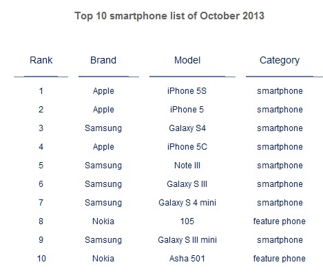 홍콩 시장조사 업체 카운터포인트 리서치의 최근 발표에 의하면 애플 ‘아이폰5S’가 지난 10월 세계에서 가장 많이 팔린 스마트폰으로 조사됐다.