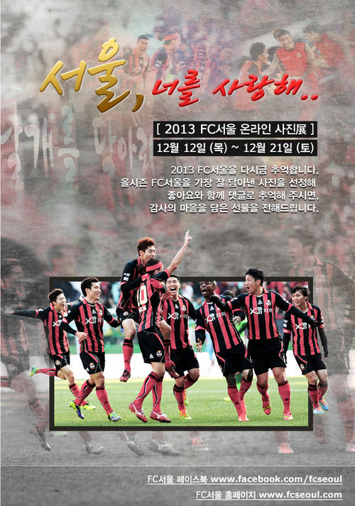 올해로 6회째를 맞이한 FC서울 사진전은 SNS 절대 강자 구단답게 온라인으로 진행되며, 2013 시즌을 보내며 겪었던 FC서울의 다양한 이야기들을 팬들에게 소개할 예정이다.
