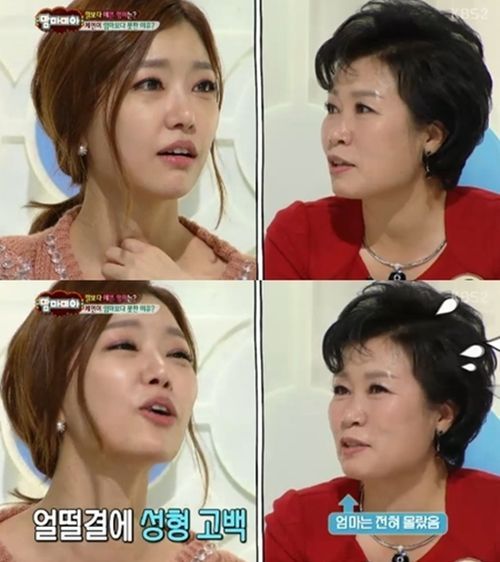 하지만 레이디제인은 "손댔다"라고 말하며 성형수술 사실을 고백했고, 딸의 성형수술 사실에 당황한 어머니는 "성형수술하는 거 좋아하지 않는데 나 몰래 댔나보다"고 덧붙여 웃음을 자아냈다.