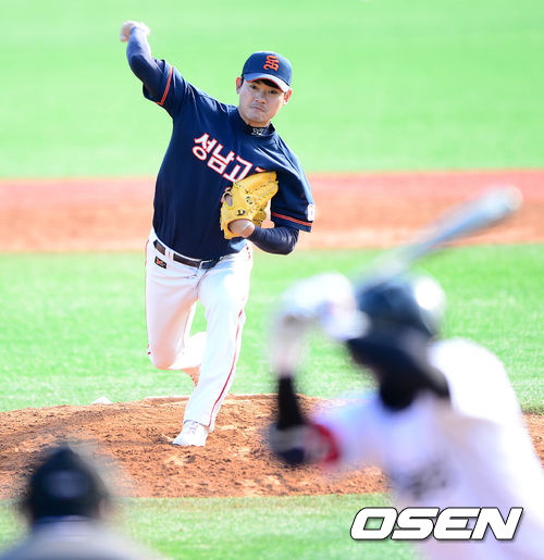 8회초 성남고 노경은이 힘차게 공을 던지고 있다.