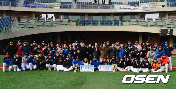 이병석 대한야구협회장을 비롯한 양팀 선수들이 기념촬영을 하고 있다./sunday@osen.co.kr