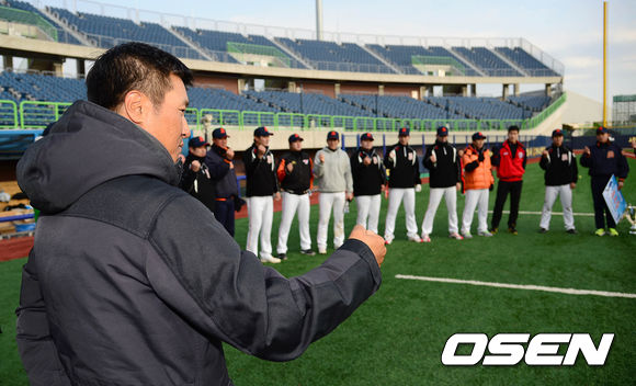 성남고 최태원 코치가 후배들과 교가를 부르고 있다./sunday@osen.co.kr
