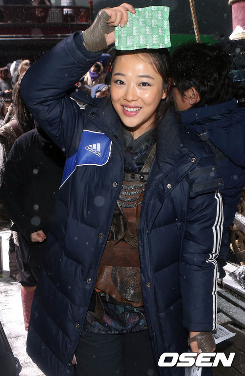 12일 오후 경기도 남양주종합촬영소에서 진행된 영화 '해적: 바다로간 산적' 촬영 현장 공개에서 설리가 촬영을 마치고 이동하고 있다.