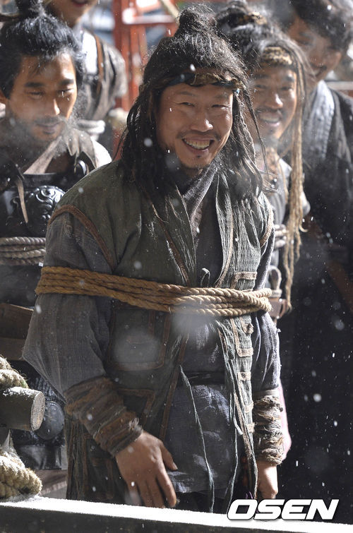 12일 오후 경기도 남양주종합촬영소에서 진행된 영화 '해적: 바다로간 산적' 촬영 현장 공개에서 유해진이 미소를 짓고 있다.