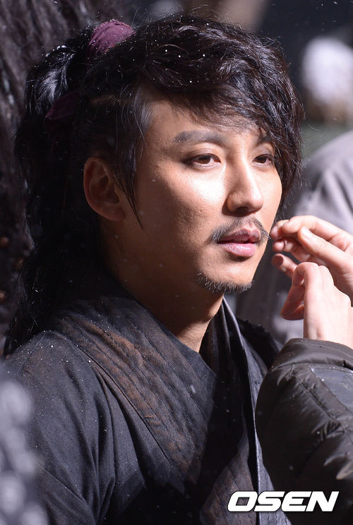 12일 오후 경기도 남양주종합촬영소에서 진행된 영화 '해적: 바다로간 산적' 촬영 현장 공개에서 김남길이 분장을 고치고 있다.