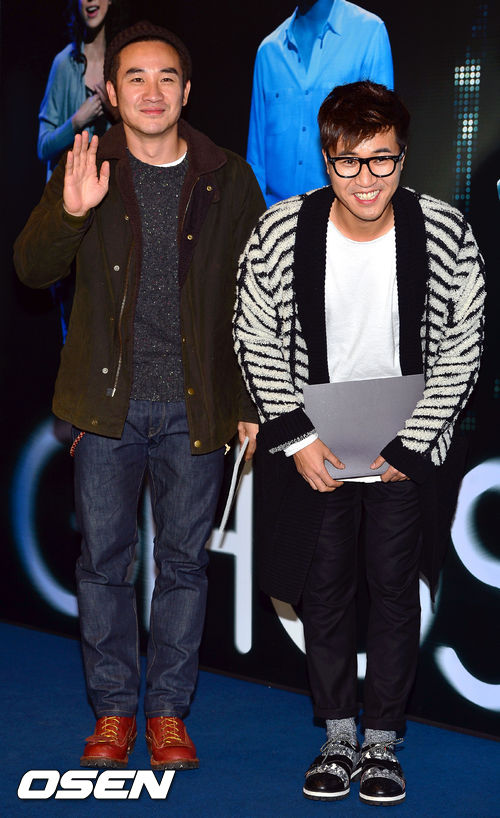 12일 오후 서울 신도림동 디큐브 아트센터에서 열린 뮤지컬 '고스트' VIP 시사회에서 배우 엄태웅과 가수 김종민이 참석하고 있다.