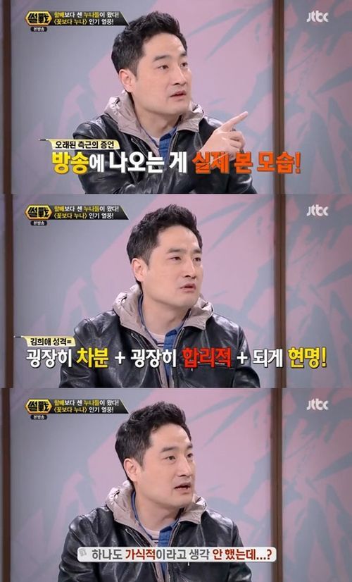 그는 이어 "김희애는 방송 모습이 실제 본 모습이다. 천리 만리를 내다 보는 스타일"이라며 "굉장히 차분하고 합리적이고 현명하다. 그래서 '꽃보다 누나' 모습이 가식적이라고 생각하지 않았다"고 전했다.