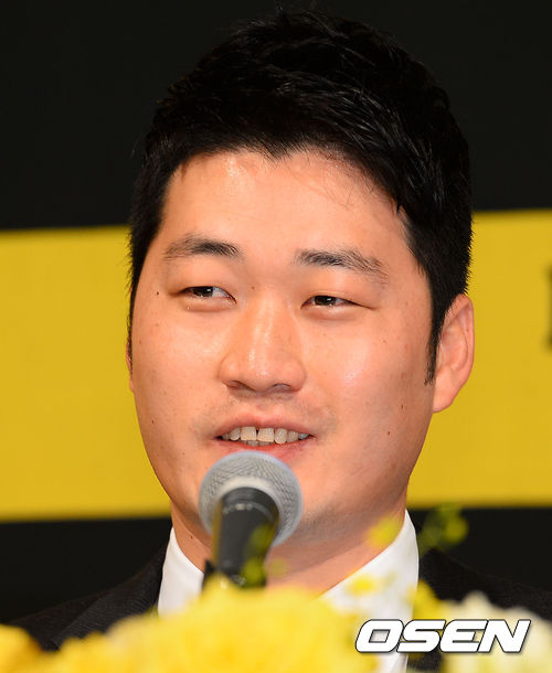 13일 오후 일본 오사카 리츠칼튼 호텔에서 진행된 '오승환 한신 타이거스 입단 기자회견'에서 오승환이 미소짓고 있다.