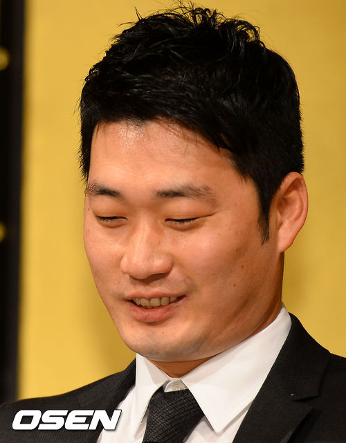 13일 오후 일본 오사카 리츠칼튼 호텔에서 진행된 '오승환 한신 타이거스 입단 기자회견'에서 오승환이 미소짓고 있다.