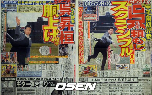 오승환은 지난 12일 오전 홈구장으로 사용하게 될 고시엔구장을 찾았다. 이날 오승환의 구장 방문은 사진은 13일 '산케이스포츠', '데일리스포츠' 등 일본 매체의 1면을 장식했다.