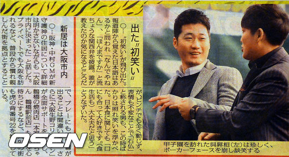 오승환은 지난 12일 오전 홈구장으로 사용하게 될 고시엔구장을 찾았다. 이날 오승환의 구장 방문은 사진은 13일 '산케이스포츠', '데일리스포츠' 등 일본 매체의 1면을 장식과 함께 여러 매체의 관심을 받아 신문에 기재됐다.