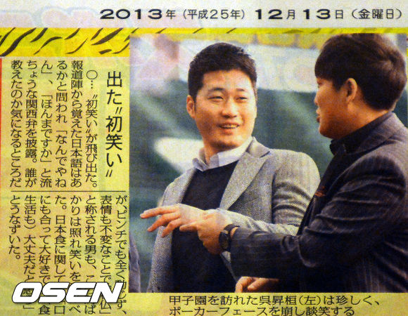 오승환은 지난 12일 오전 홈구장으로 사용하게 될 고시엔구장을 찾았다. 이날 오승환의 구장 방문은 사진은 13일 '산케이스포츠', '데일리스포츠' 등 일본 매체의 1면을 장식과 함께 여러 매체의 관심을 받아 신문에 기재됐다.