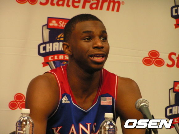 2014년 NBA 드래프트 전체 1순위 후보로 거론되는 앤드류 위긴스(18, 캔자스대) / 1만 6000여 관중이 운집한 캔자스대학의 농구 홈경기 모습.