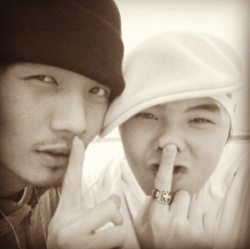 공개된 사진 속에는 지드래곤과 같은 소속사의 힙합가수 마스터 우의 사진이 담겨 있다. 마스터 우는 검지 손가락으로 입술을 가리고 있는 반면 지드래곤은 코를 눌러 돼지코를 만들었다.