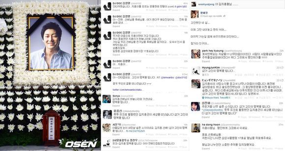 고 김지훈에 애도의 글을 올린 연예인들 트위터(오른쪽)